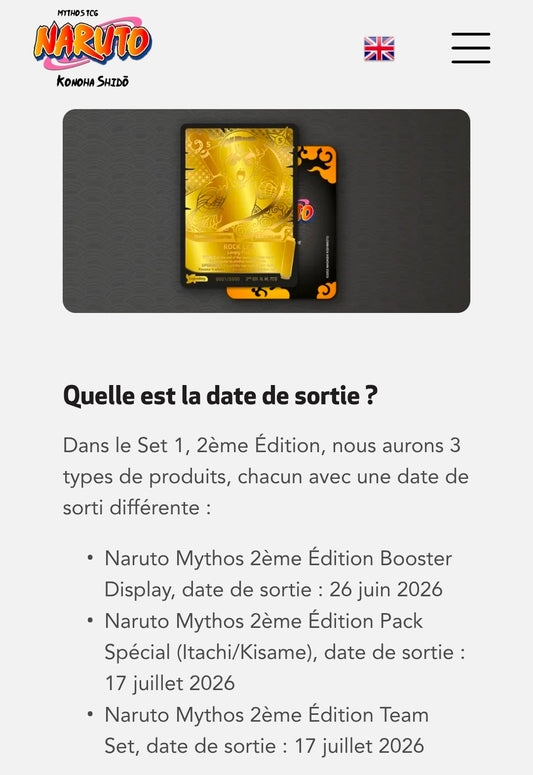 🚦Précommande - Naruto Mythos TCG Konoha Shidō 2e Édition - Display 24 Boosters - English🚦